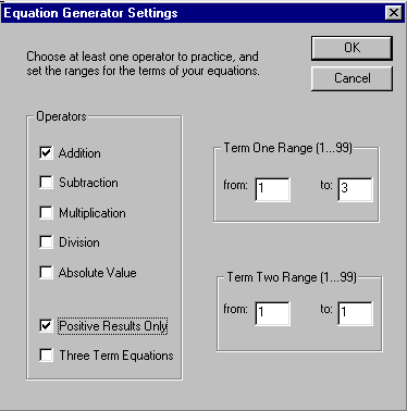 Figure 1: Equation Generator Dialog - Simple Addition