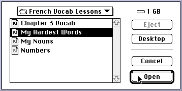 If you choose to use your own vocabulary lesson, you will be presented with a standard file dialog box from which you can select your "Mini-Lesson" (if you choose to use the built-in dictionary the game will begin immediately).